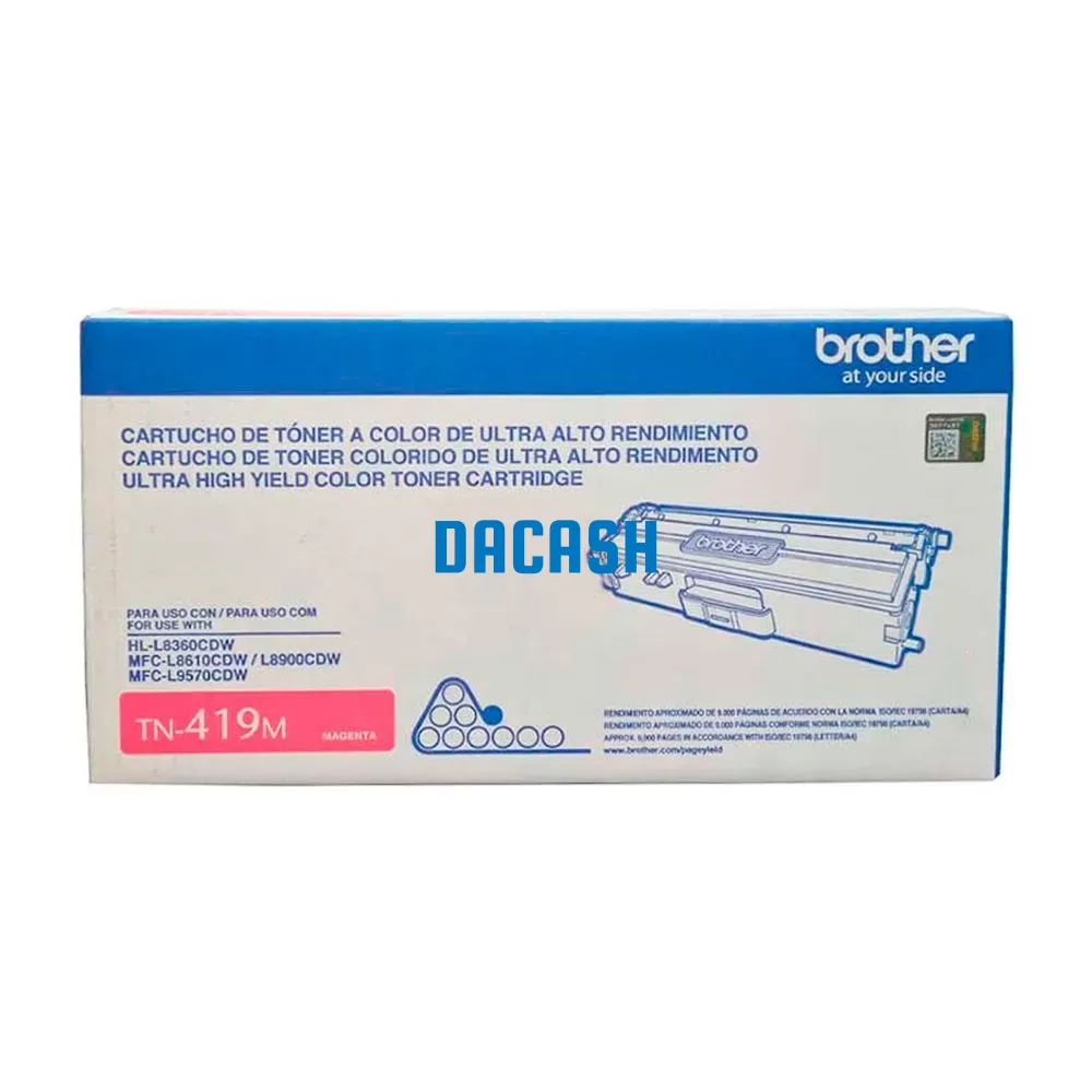 Este Cartucho de Tóner TN-419M está fabricado para usarse en los siguientes modelos de Impresoras Brother L8360CDW, L8610CDW, L8900CDW, L9570CDW las cuales realizan impresiones de alta calidad a un precio de impresión bastante económico.
