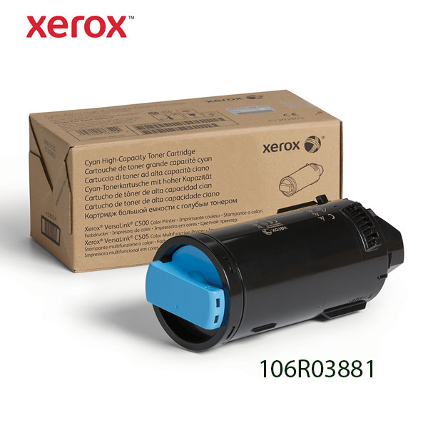 Los Cartuchos de Tóner Xerox con sub-código de identidad 106R03881 viene con un chip inteligente insertado en el cartucho 106R03881 la cual contabiliza las impresiones de color Cian Versalink que sé realizan, de igual manera el código del tóner se encuentra grabado en el cartucho, en modo de alto relieve el cual es 106R03881, que vendría a ser su identificador como producto de la casa Xerox