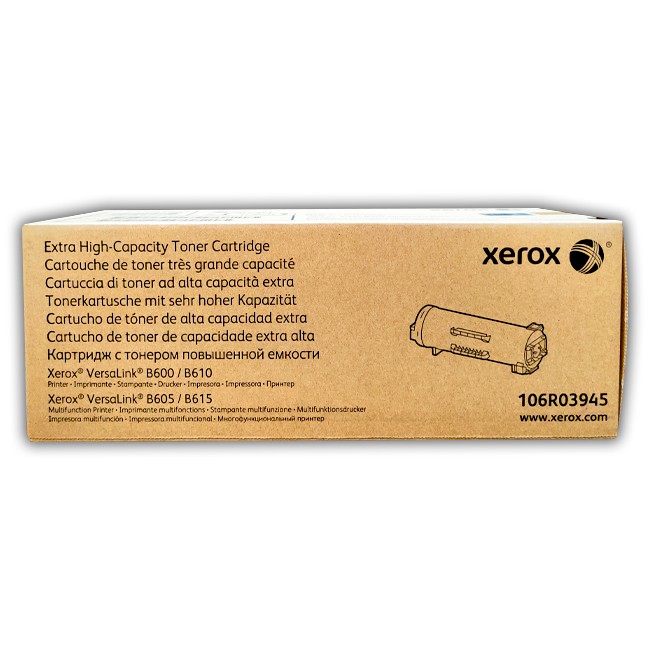 Este Cartucho de Tóner 106R03945 está fabricado para usarse en los siguientes modelos de Impresoras Xerox VersaLink B600,  B605,  B610,  B615 las cuales realizan impresiones de alta calidad a un precio de impresión bastante económico.